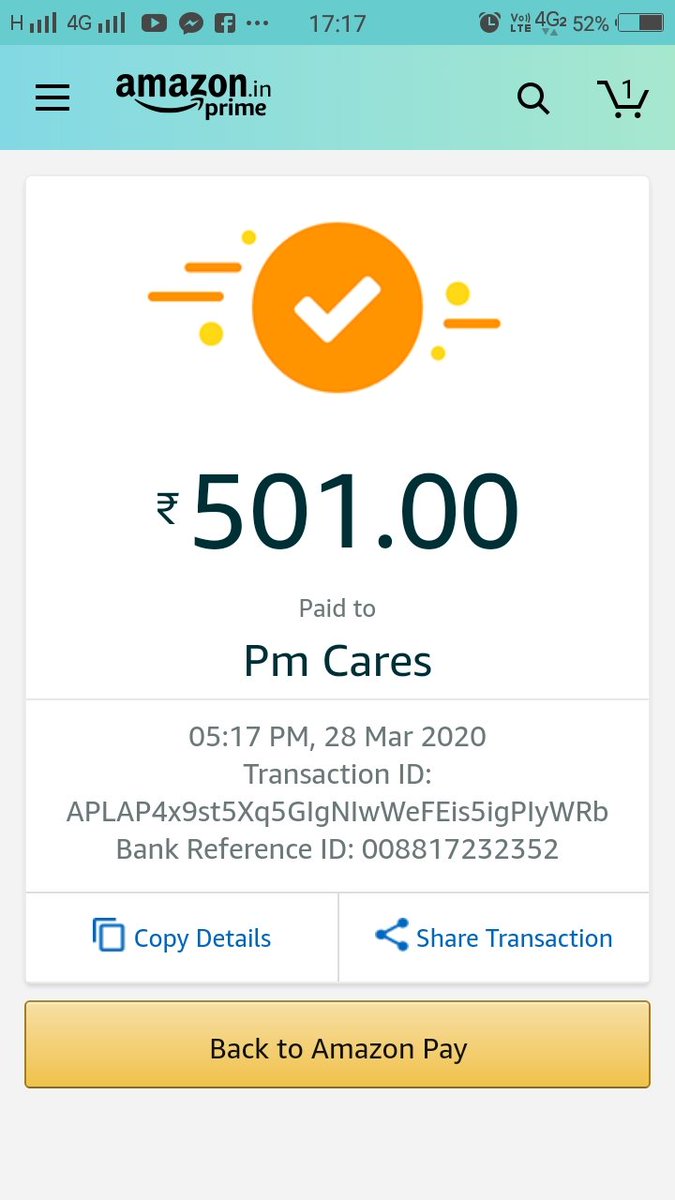 Mohit On Twitter Paid Money To Pm Cares Paid To Pmcares Sbi Date 05 17 Pm 28 Mar 2020 Amount 501 00 Status Success Remarks Upi Bank Reference Id 008817232352 Transaction Id Aplap4x9st5xq5gigniwwefeis5igpiywrb Https T Co